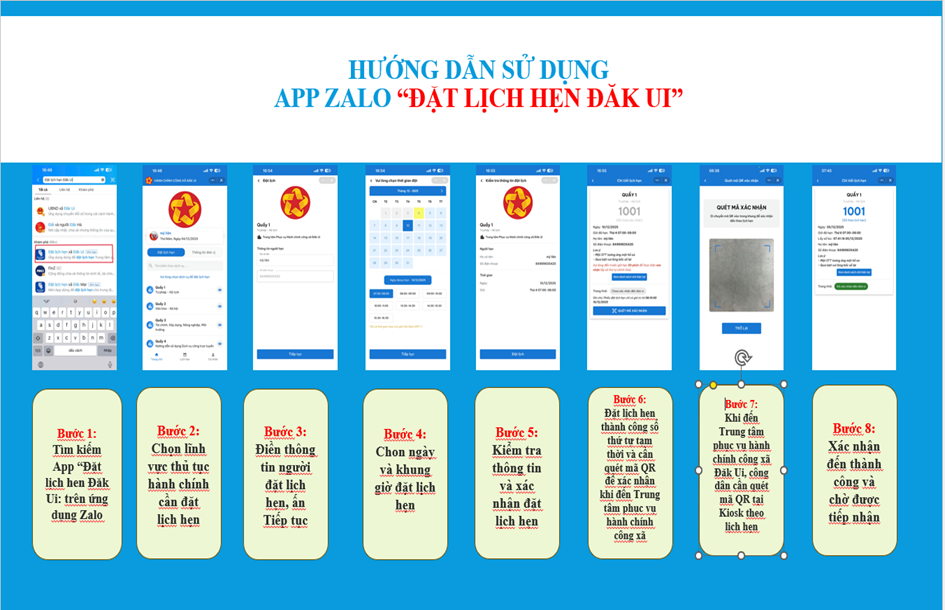 Ứng dụng “Đặt lịch hẹn Đăk Ui”mang đến cho người dân một trải nghiệm hành chính công hoàn toàn mới – nhanh chóng, tiện lợi và minh bạch. Chỉ với vài thao tác trên điện thoại, người dân có thể đặt lịch hẹn trước, chọn đúng dịch vụ – ngày giờ phù hợp và nhận mã QR để được phục vụ ngay khi đến Trung tâm hành chính công xã Đăk Ui, không còn cảnh chờ đợi hay chen lấn.