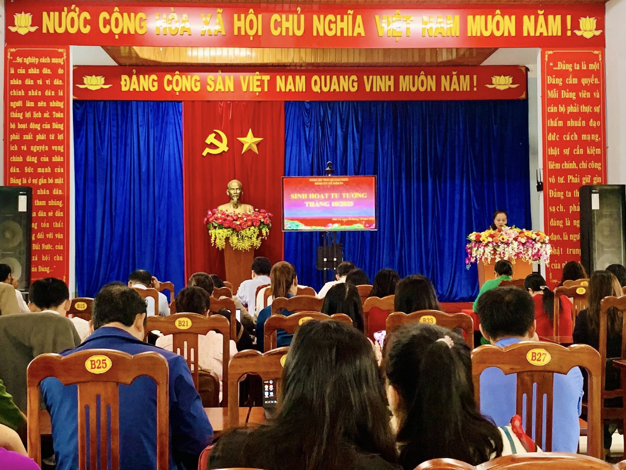 Dự buổi sinh hoạt tư tưởng có đồng chí Nguyễn Thế Quyền, Bí thư Đảng ủy-Chủ tịch HĐND xã; đồng chí Y Thọ, Phó Bí thư thường trực Đảng ủy; đồng chí Phạm Văn Lập, Phó Bí thư-Chủ tịch UBND xã cùng toàn thể cán bộ, công chức xã. Dự buổi sinh hoạt còn có các đồng chí là Ban giám hiệu nhà trường, cán bộ, giáo viên các đơn vị trên địa bàn xã; các đồng chí Bí thư chi bộ, thôn trưởng các thôn.